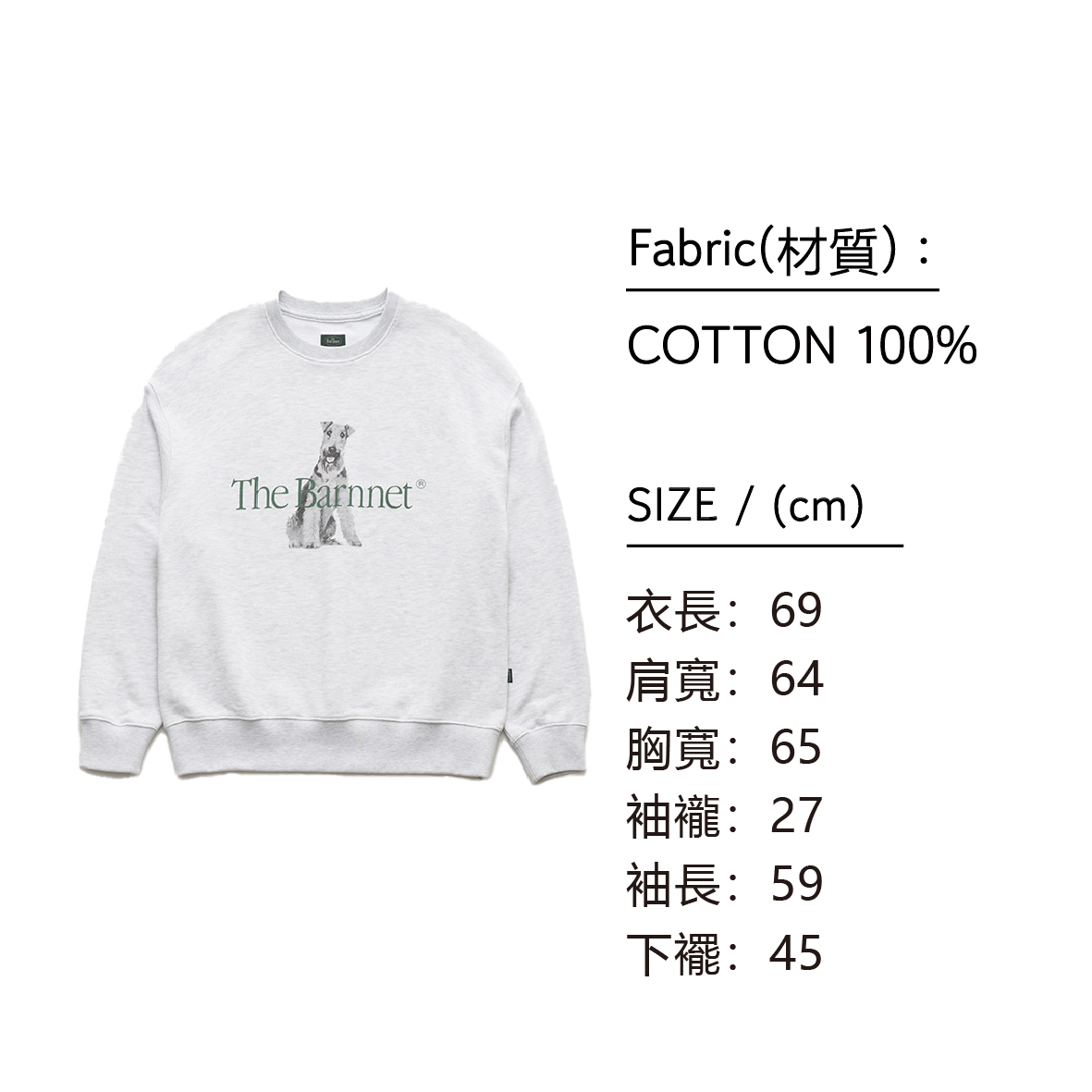 The Barnnet Casuel-狗狗正面長袖衛衣(灰色/MELANGE GREY)